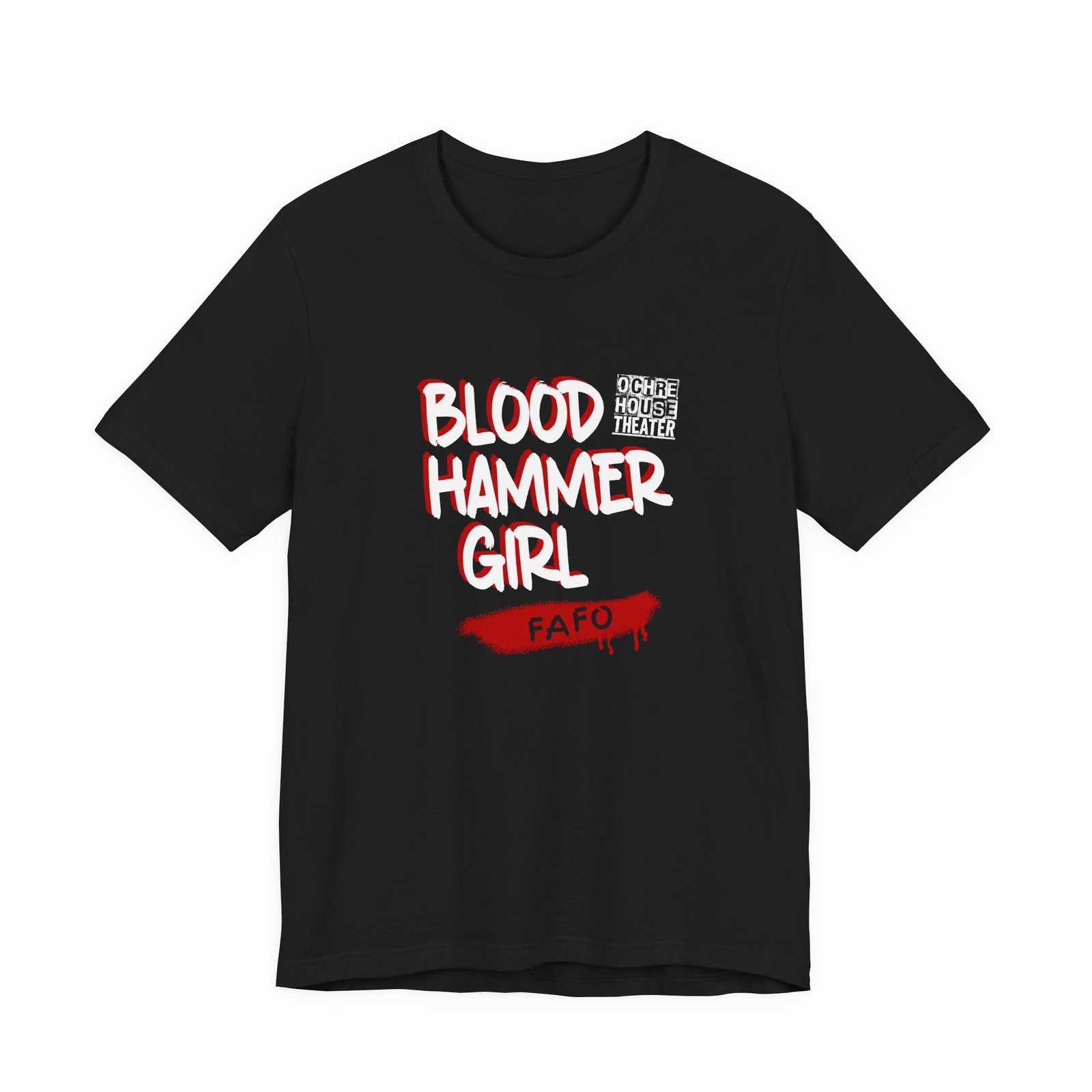 Distress your friends and neighbors in haute cuisine. Blood Hammer Girl, written and directed by Justin Locklear, runs February 18 – March 7. Proceeds help this production and these artists. Order before noon and, for an extra $3.25 or so, get it in two days. Do not wear to a protest.